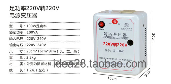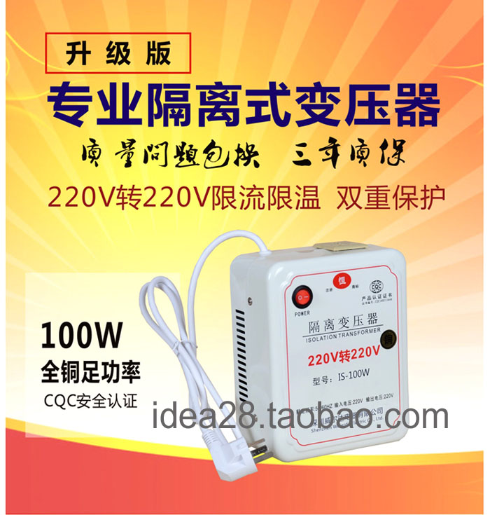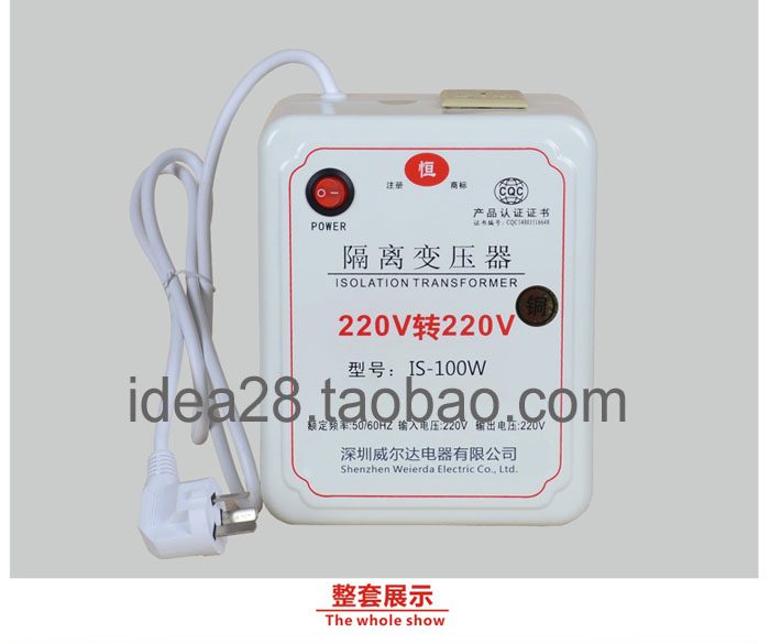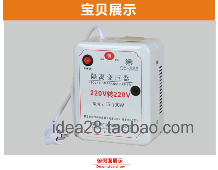 带接地隔离变压器220v转220v100VA志恒IS-100W隔离变压器纯铜制造,初次级完全隔离,输入带接地,输出地与输入地不相通。100w隔离变压器初次级之间1分钟耐压> 5000V是正宗的隔离电源哦 优质进口材料、高质量进口硅钢片、漆包线、尼龙阻然胶芯、 阻然玛拉胶带、通过真空含浸绝缘漆处理等。
